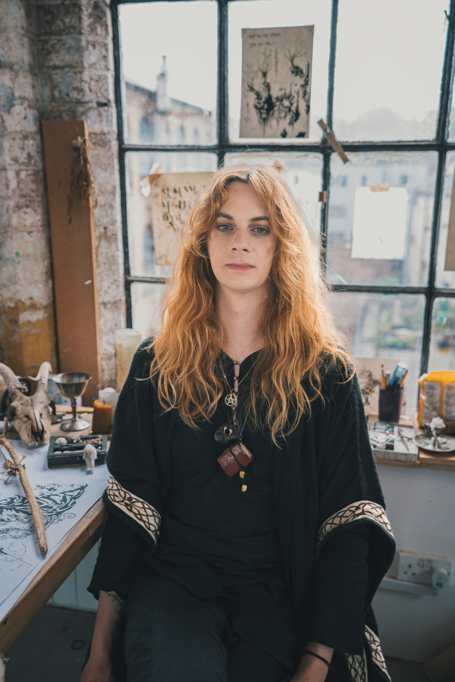 I am an artist and occultist based in Nottingham, England. Through the combination of ritual performance, visionary praxis, and multidisciplinary art making, I make occult art for the present moment. My work is rooted in the notion of magic as the essence of Radical Change. Aware of the stark material conditions that dictate social realities, I use the performance of magic as a response to crisis, harnessing ritual as a means of political, social, and spiritual empowerment. I am currently investigating the relationship between madness and magic β an exploration born out of my experiences with mental illness and how they interact with the philosophies and practices of my spiritual belonging within contemporary witchcraft and esotericism. Through a melding of the mystical and the mundane and mediating between the earthly and the otherworldly, my work tells the story of a world which is at once both fractured by material injustices and wholly enchanted by immaterial spiritual forces. β